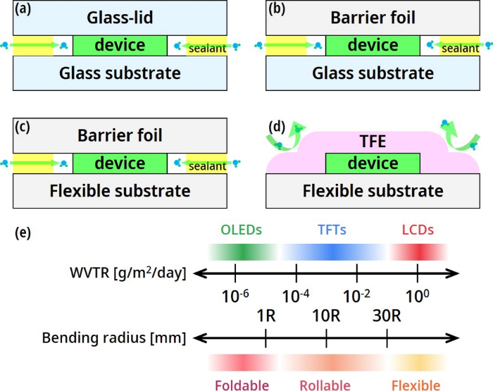 圖2:OLED封裝類型及不同柔性需求對(duì)應(yīng)的水汽透過(guò)率