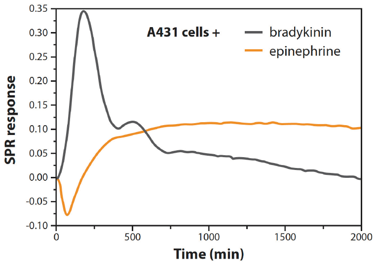 由于其在生理過程中的核心作用,gpcr作為新藥物化合物的靶點(diǎn)被廣泛研究。結(jié)合全SPR曲線峰的動(dòng)態(tài)角度(PAP)和強(qiáng)度(PMI)變化,MP-SPR用于將活細(xì)胞中活化的gpcr分離成亞型特異性信號(hào)通路,而不使用拮抗劑或其他反應(yīng)調(diào)節(jié)劑。