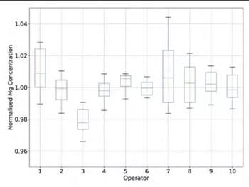 我們采用一種創(chuàng)新的圖像重建方法解決了這一問(wèn)題,該方法利用了蒙特卡洛和數(shù)值模擬的結(jié)果以及特定材料知識(shí)和假設(shè)。在研究了不同圖像上的數(shù)百次迭代之后,我們確定了重建的可再現(xiàn)性,以 3σ 的方式評(píng)估為 ±1.05%(見(jiàn)圖 1)。此外,與基準(zhǔn)特征檢測(cè)解決方案相比,我們的技術(shù)可解決多達(dá) 40%的缺陷。