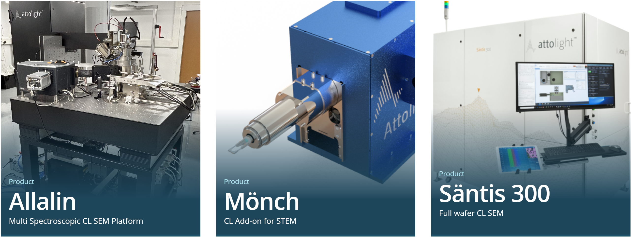 在顯示行業(yè)中,隨著Mini/MicroLED、OLED、量子點等新型顯示技術(shù)的快速發(fā)展,陰極發(fā)光掃描電鏡(CL-SEM)憑借其獨特的材料特性分析能力,成為研發(fā)、生產(chǎn)和質(zhì)量控制中不可或缺的工具,Attolight CL-SEM更是其中的佼佼者: