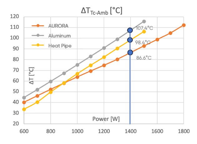 2、對于更高功率水平和密度的半導(dǎo)體模塊,AURORA比其他技術(shù)散熱性能更好。