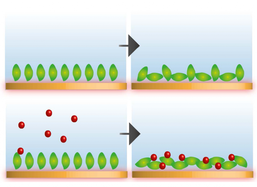 在納米等離子體光譜技術(NPS)中,納米結(jié)構傳感器的局域表面等離激元共振技術(LSPR)用于探測鄰近傳感器表面(<30 nm)的折射率(與光/干質(zhì)量有關)的微小變化。它能夠極其靈敏地檢測發(fā)生在傳感器/樣品界面處的變化過程。